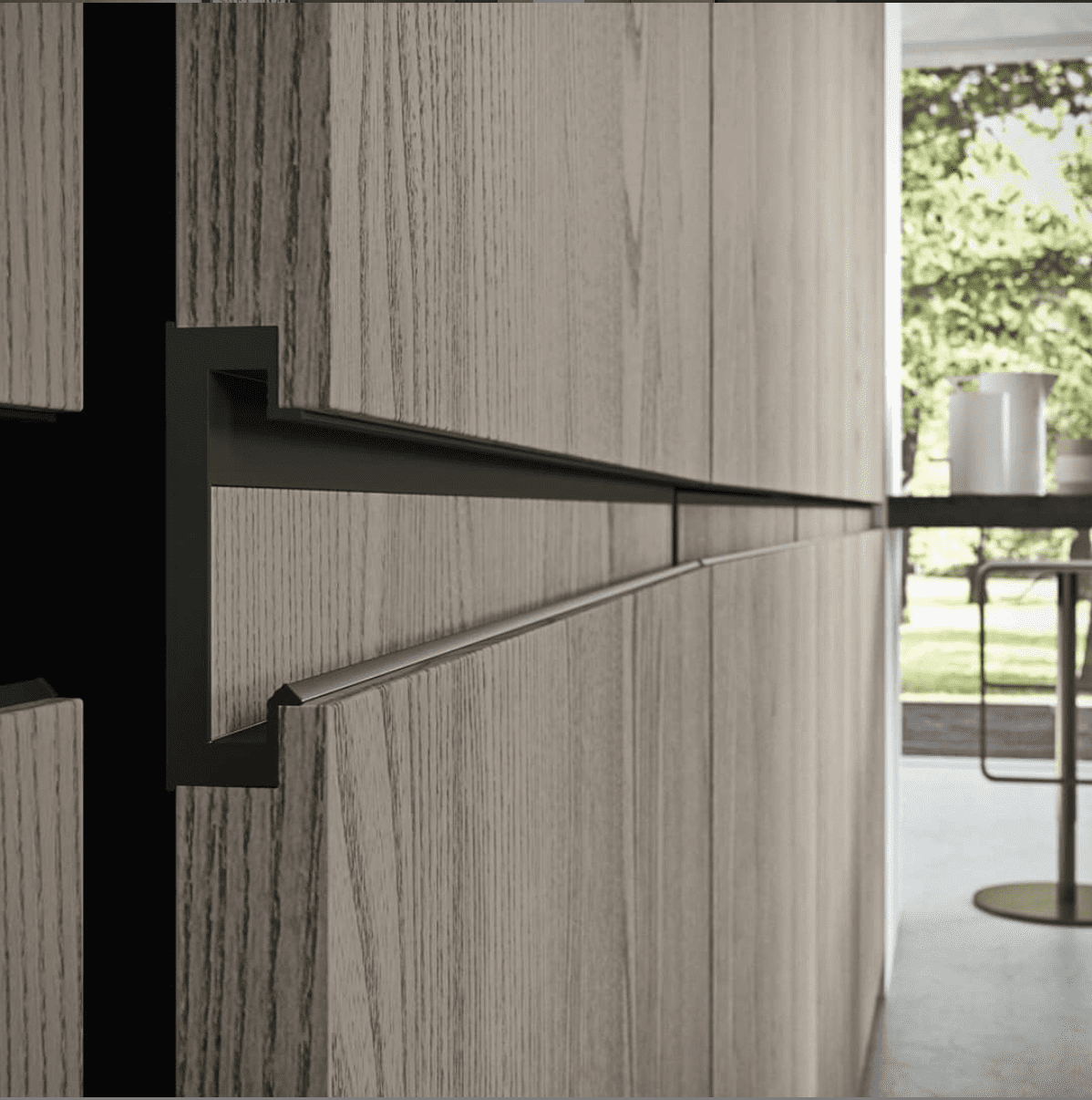 Nii elegantselt ja efektselt viimistletud vanutatud puidust fassaade ei ole me leidnud ühegi teise tootja portfooliost. Eriti tuleb silmas pidada uste konstruktsiooni, kus täispuidust plaat on kinnitatud kerge ja vastupidava alumiiniumist raami külge, mis moodustab väga mugava ja käepärase “näpud taha” käepidemeta lahenduse.
