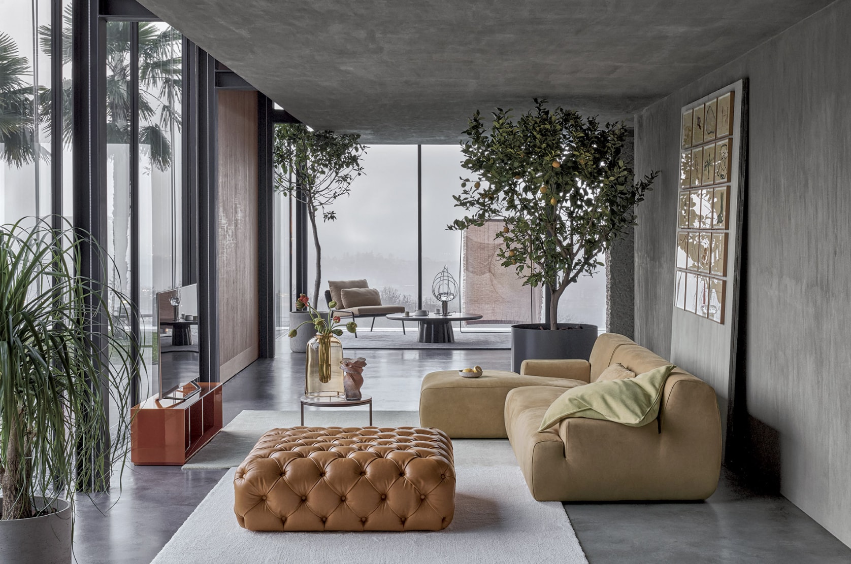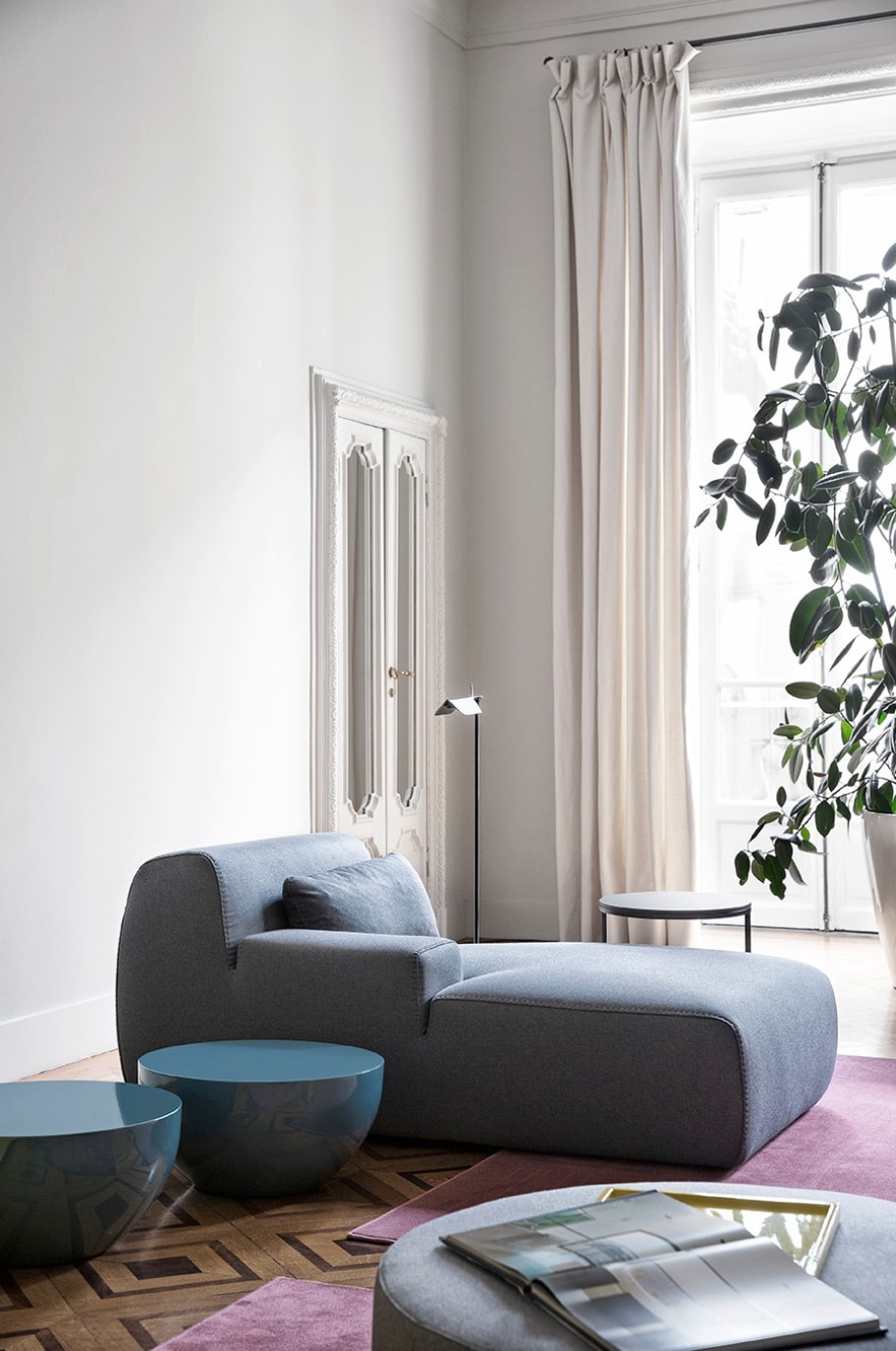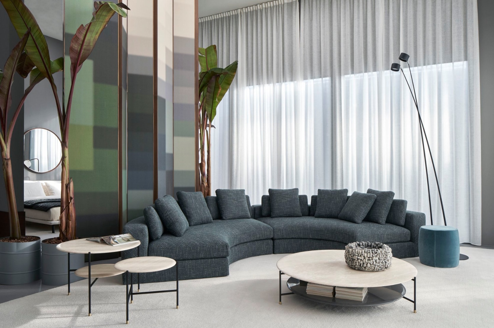 Sofas, armchairs, chaise longue, coffee tables, case goods and complements characterized by meticulous signs, precise proportions, essential volumes, precious details. A timeless, sophisticated collection, contemporary but without compromises with temporary trends in which comfort – not only tactile but also visual – is always a priority. Craftsmanship, expertise, accurate knowledge of materials, techniques and manual procedures give life to a 100% made in Italy collection.