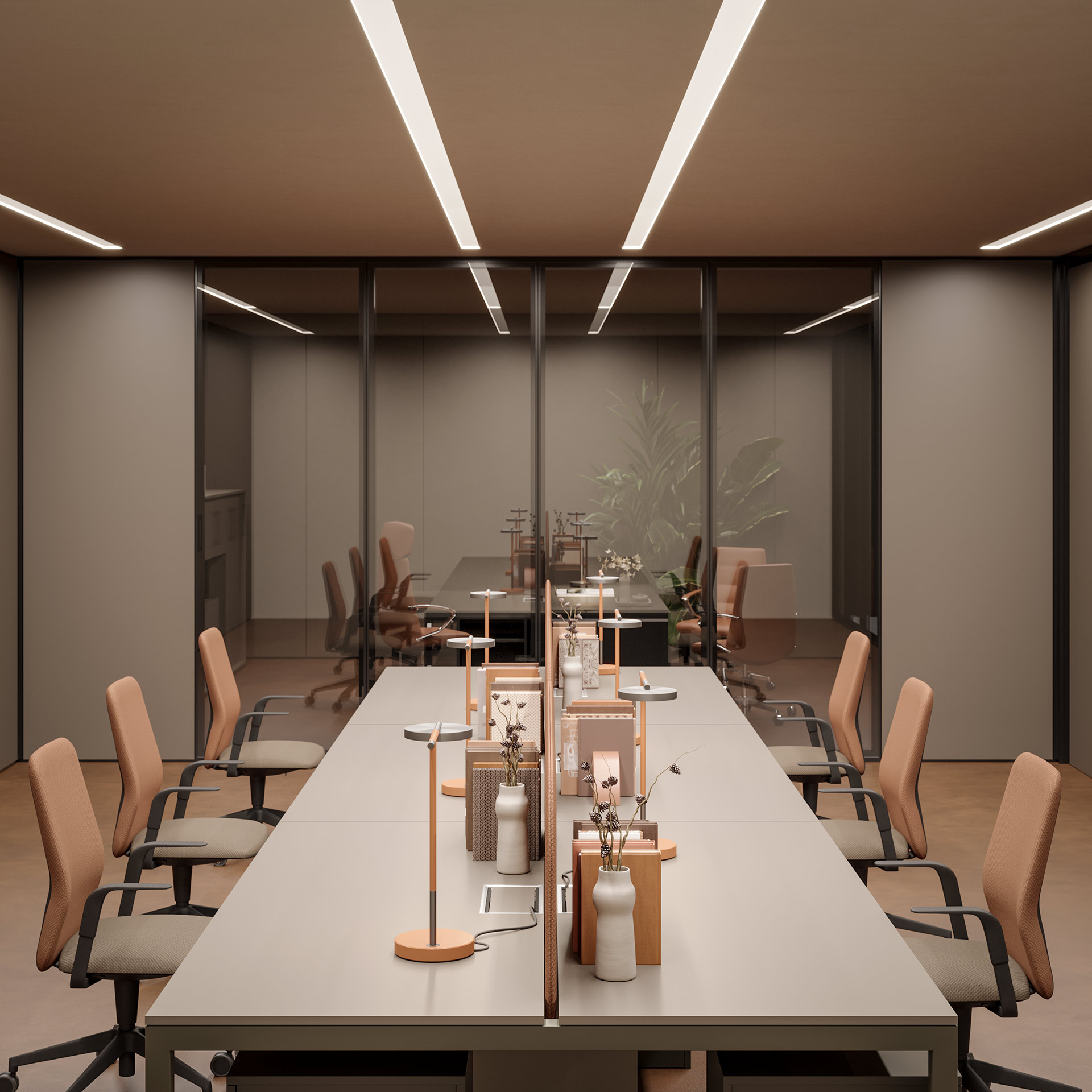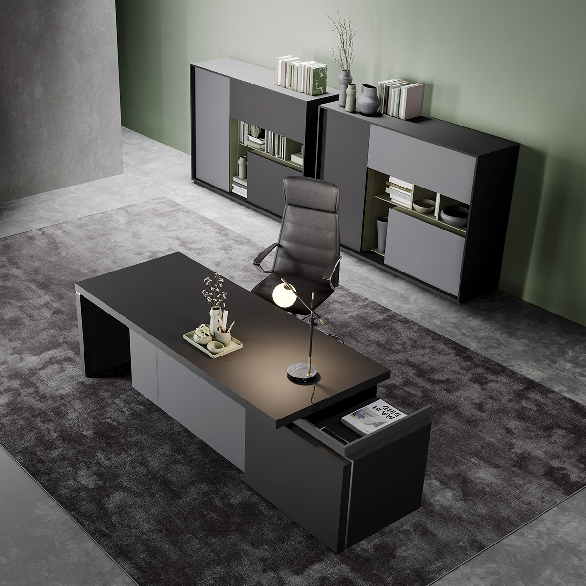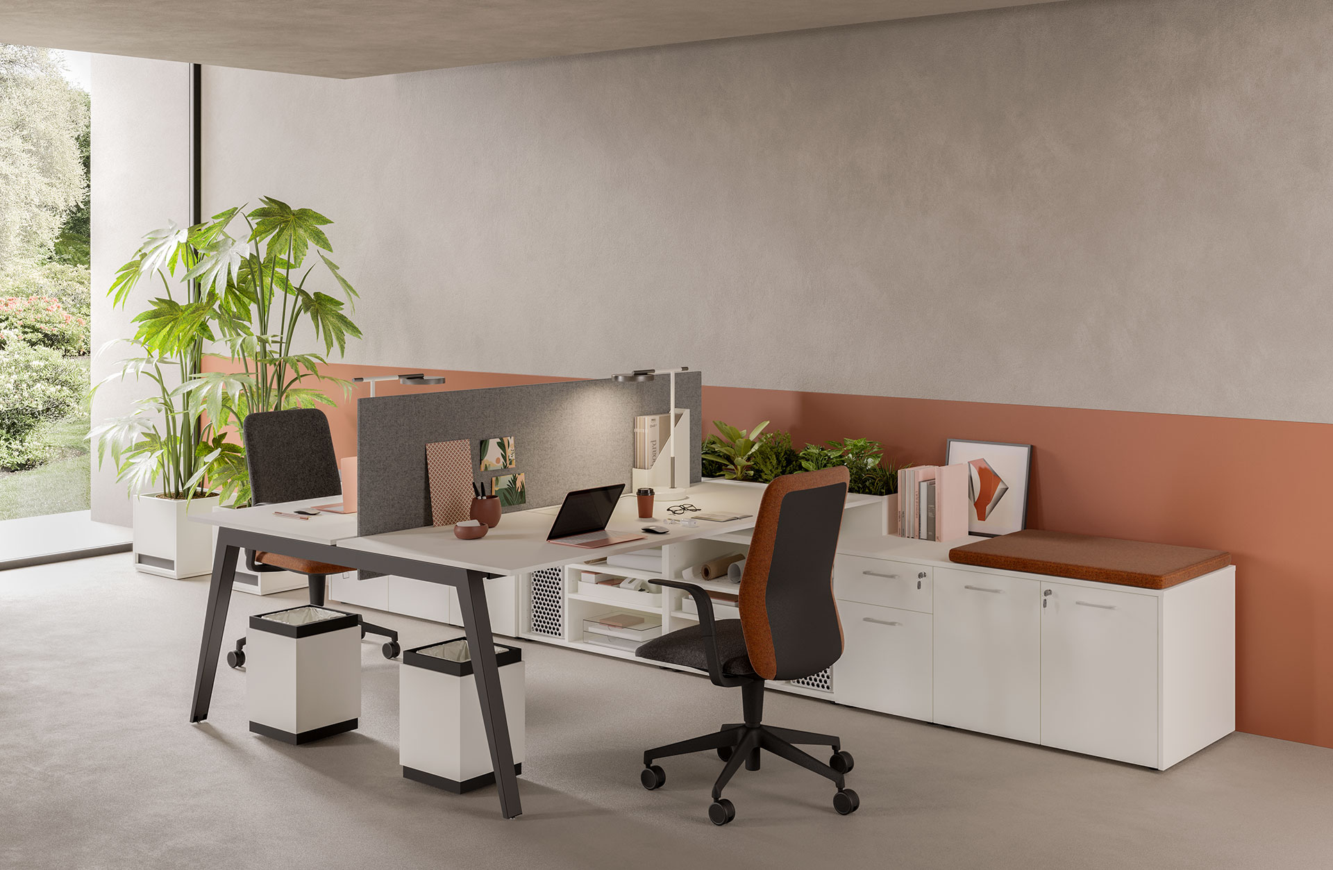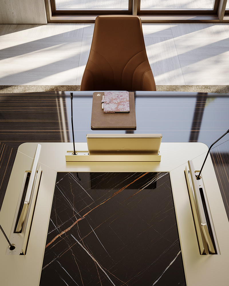 From the PROF product range, you can find all the furnishings for your office or home office. PROF Office includes desks, conference tables, reception desks, bookshelves, cabinets for documents and other necessary storage. In addition, PROF also offers partitions that, thanks to a wide range of materials, fit into any work environment. PROF’s extensive finishes and careful selection of elegant and functional products help personalize any office.