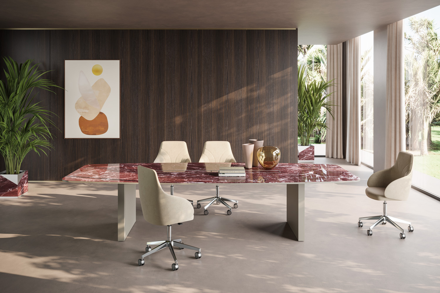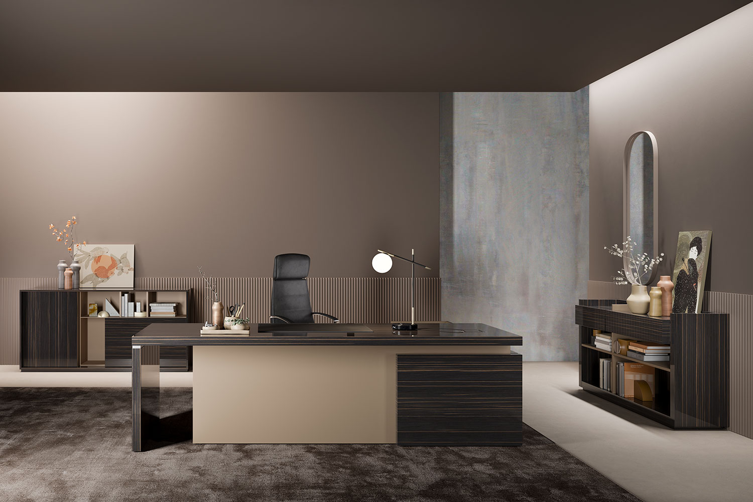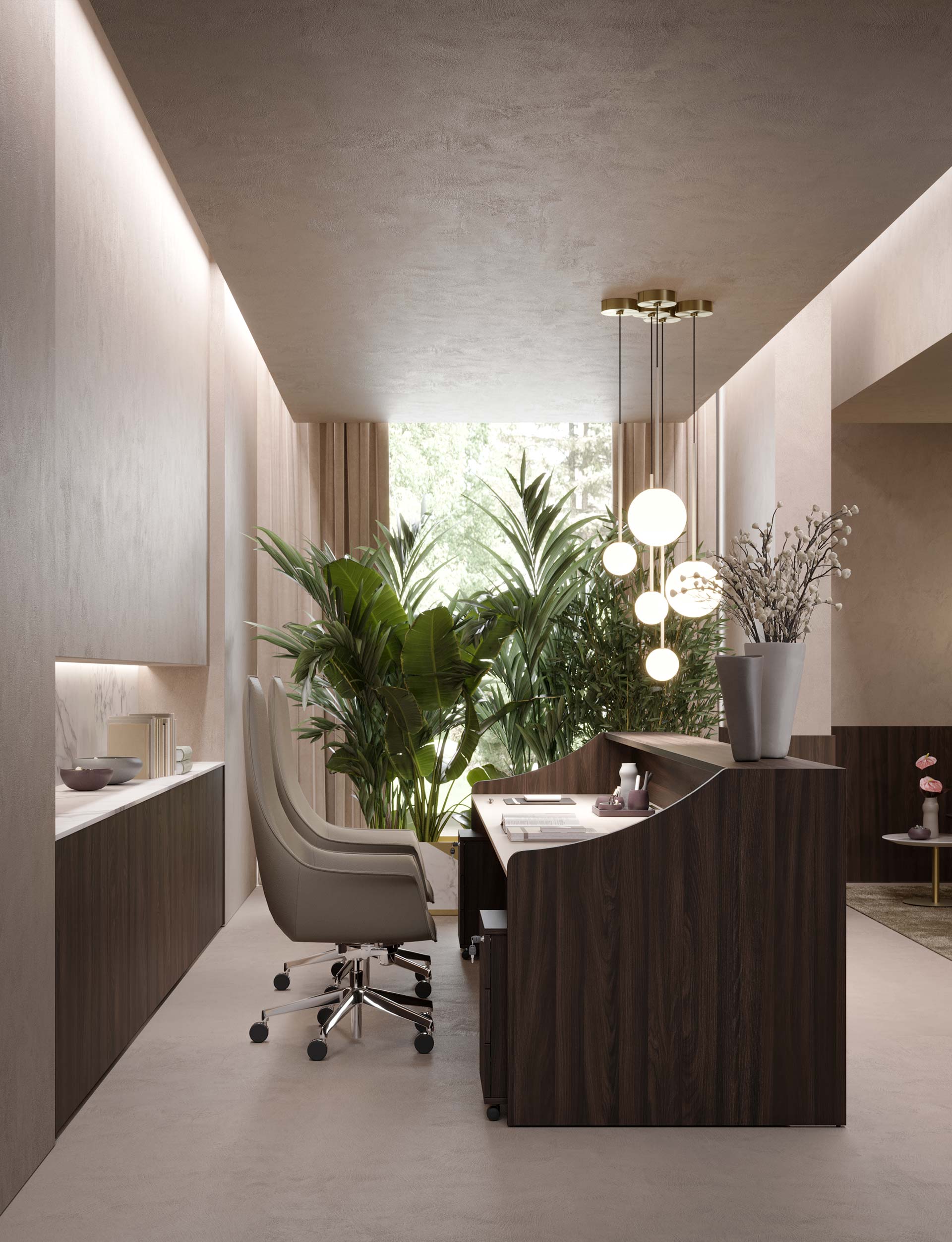 From the PROF product range, you can find all the furnishings for your office or home office. PROF Office includes desks, conference tables, reception desks, bookshelves, cabinets for documents and other necessary storage. In addition, PROF also offers partitions that, thanks to a wide range of materials, fit into any work environment. PROF’s extensive finishes and careful selection of elegant and functional products help personalize any office.