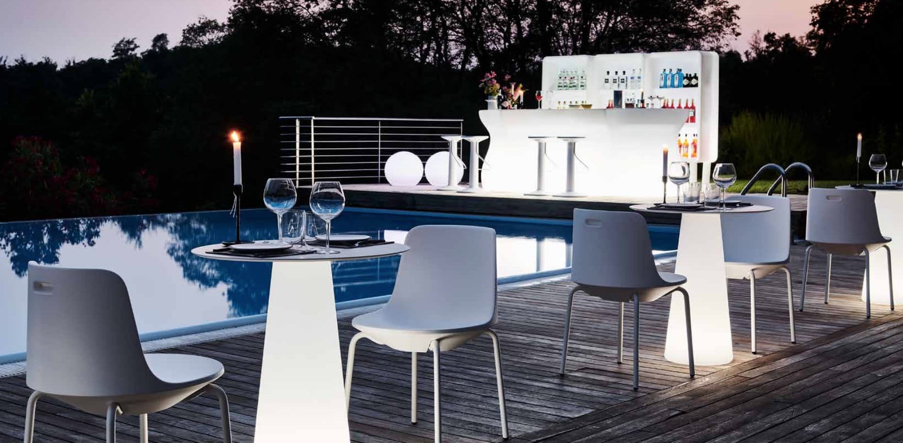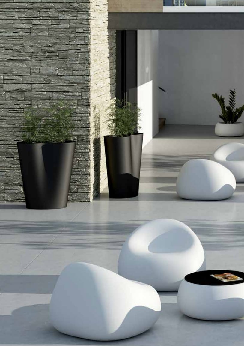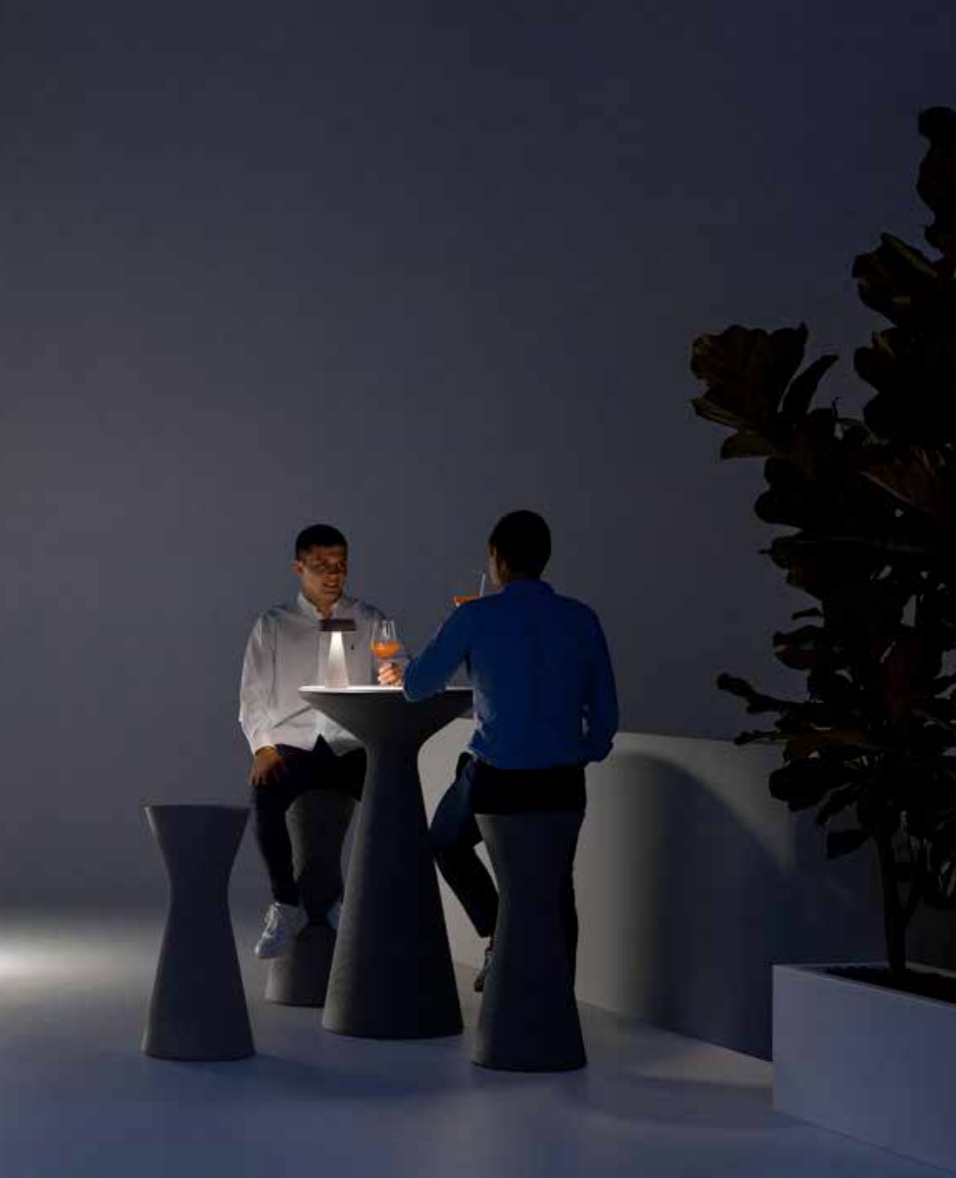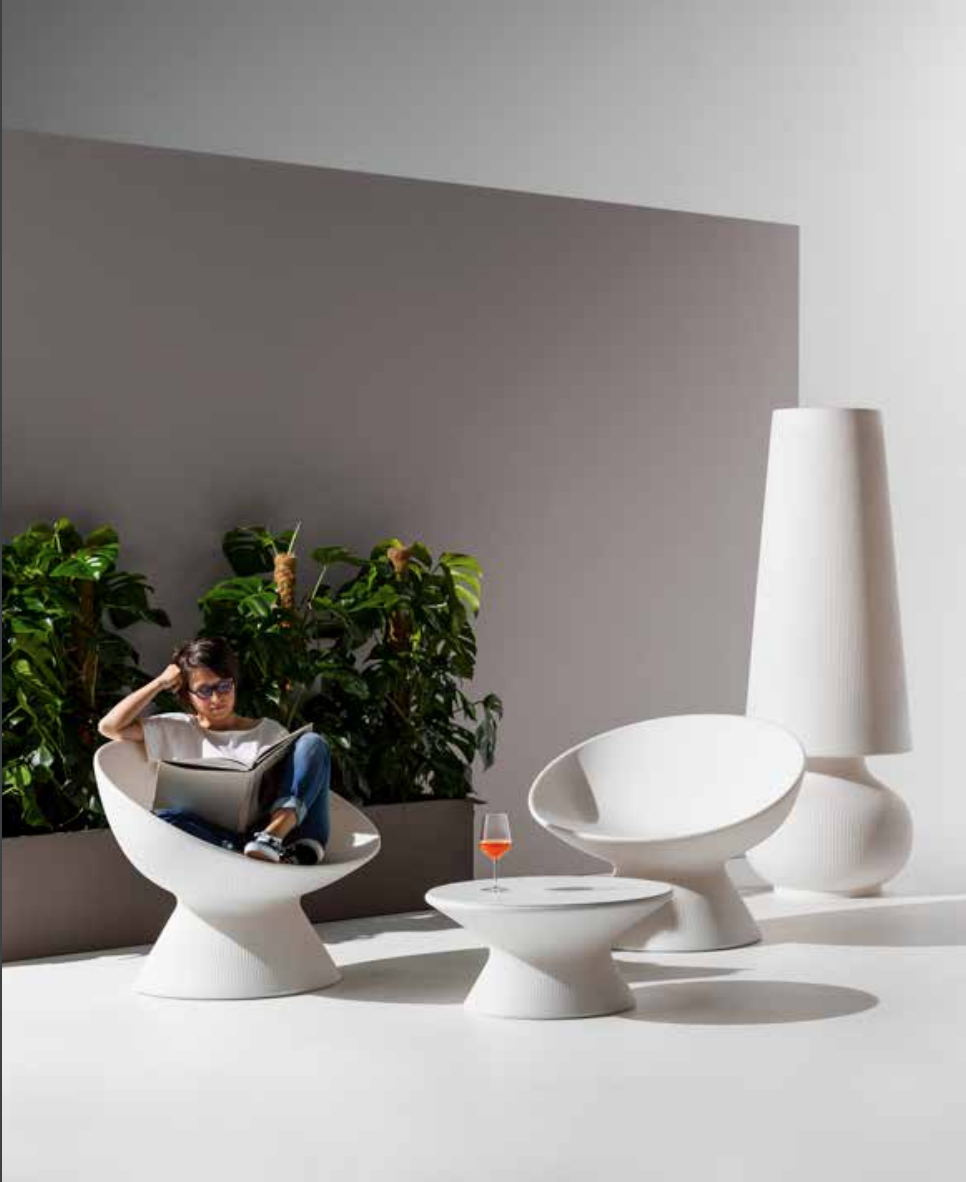 Chairs, tables, stools designed to create original combinations that adapt to every type of environment. The only thing to do is to choose the colour and finishing: lacquered recommended for interior and coloured for gardens and public spaces. But not only: luminescent materials, chromed surfaces, matt and even customized creations.