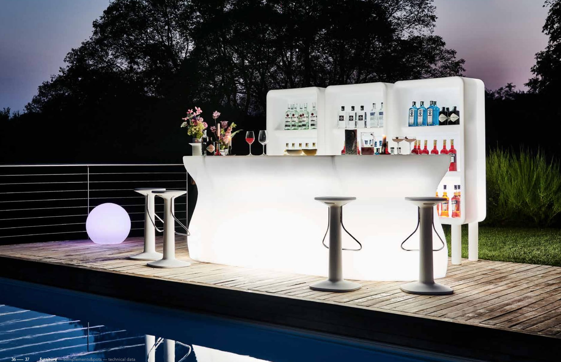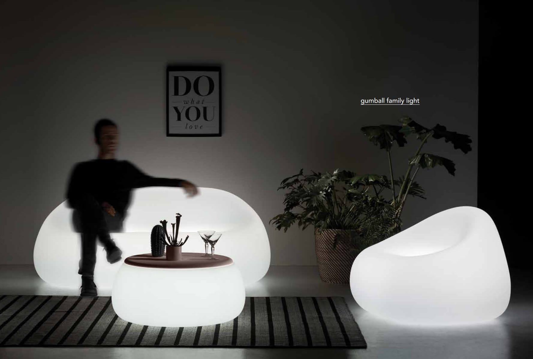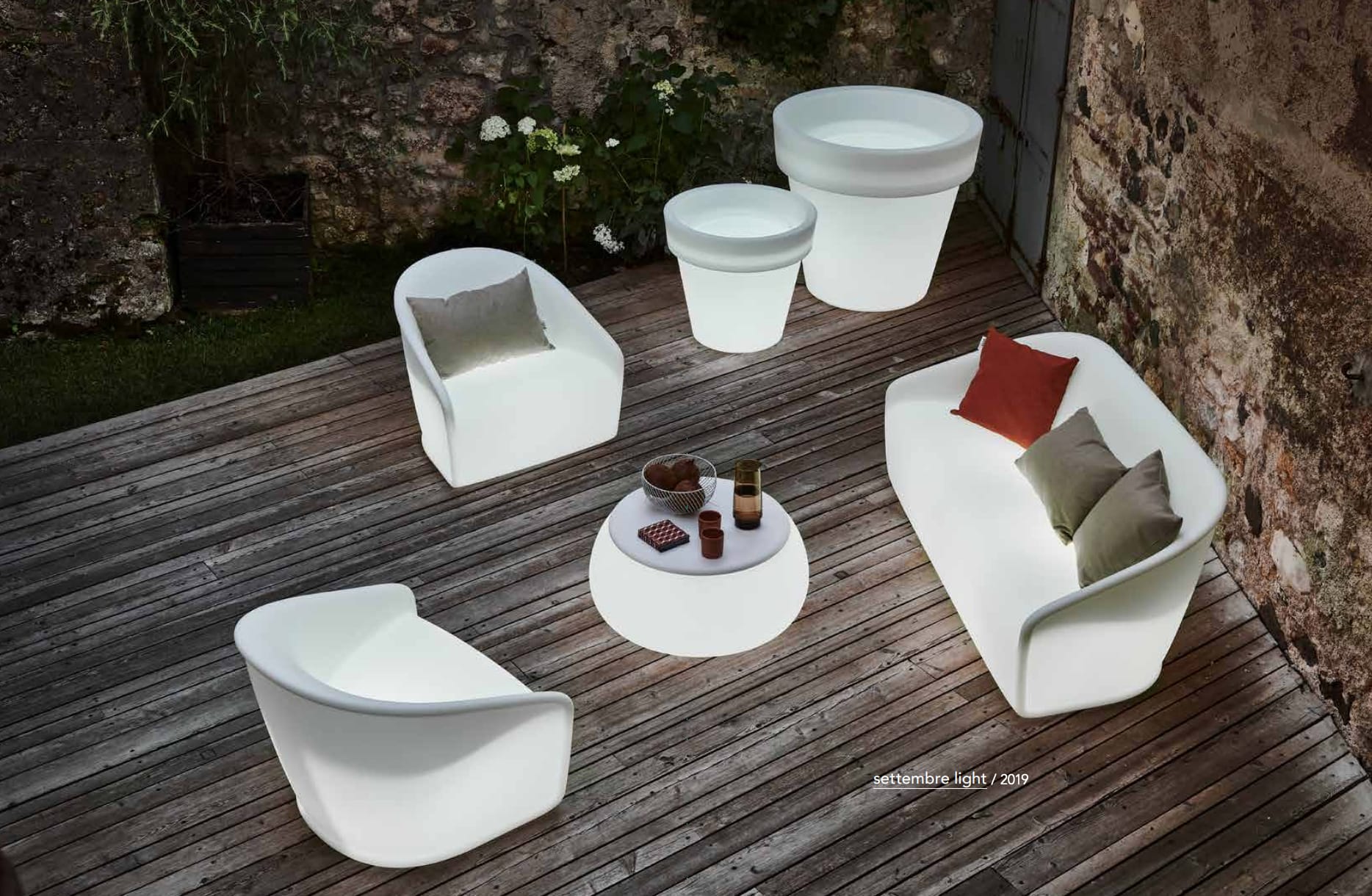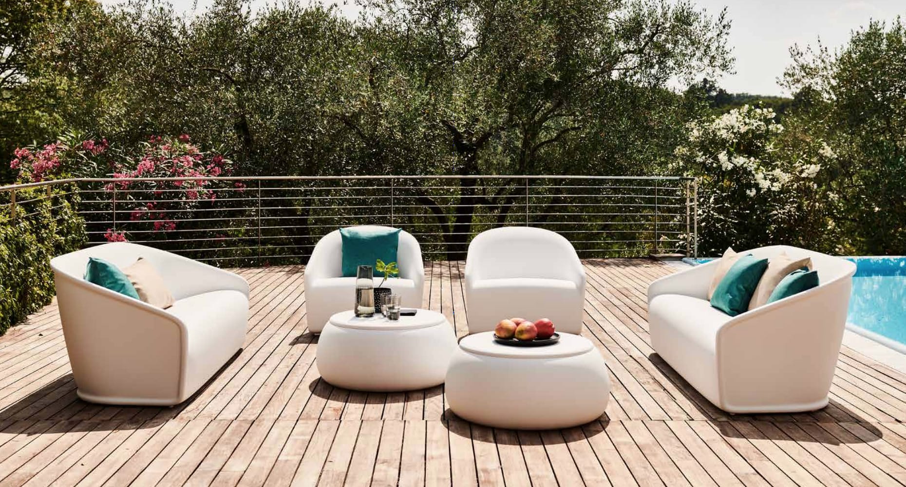 Chairs, tables, stools designed to create original combinations that adapt to every type of environment. The only thing to do is to choose the colour and finishing: lacquered recommended for interior and coloured for gardens and public spaces. But not only: luminescent materials, chromed surfaces, matt and even customized creations.