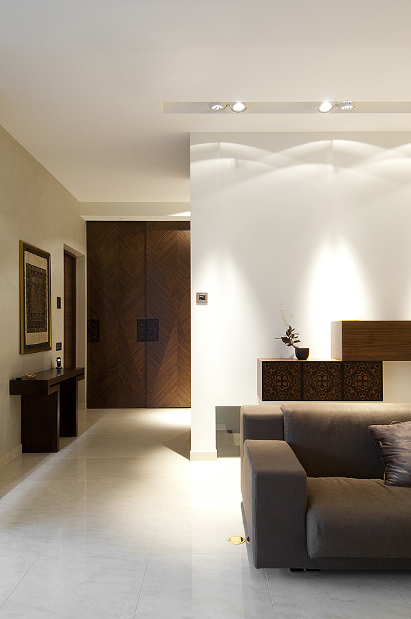 To bring this big house together, Palazzo designed its own insignia for the house and used it throughout the building. For example, we designed a stainless steel doorknob in the shape of the insignia and also used the same pattern on cupboard doors and glass doors (that was also a safety reason!)