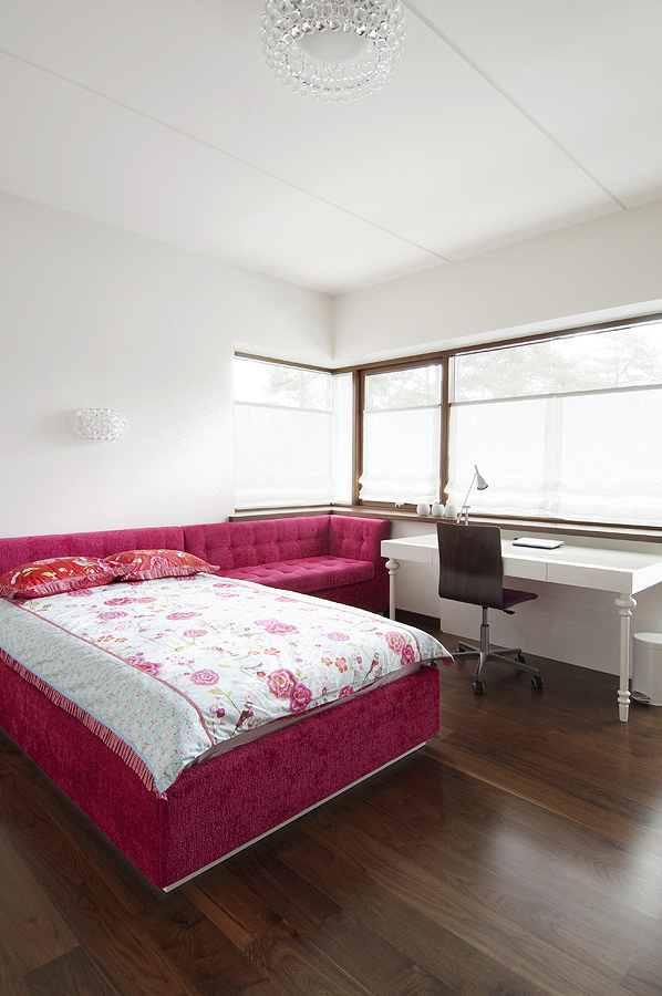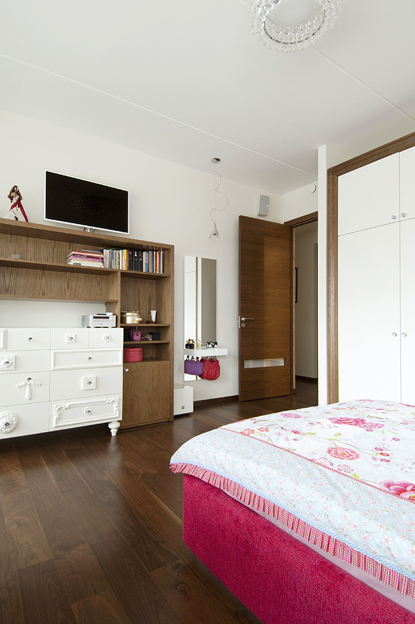 For the teenage girl inhabiting the second-floor bedroom, we had a romantic and feminine custom furniture made.