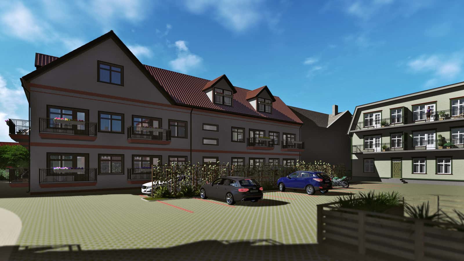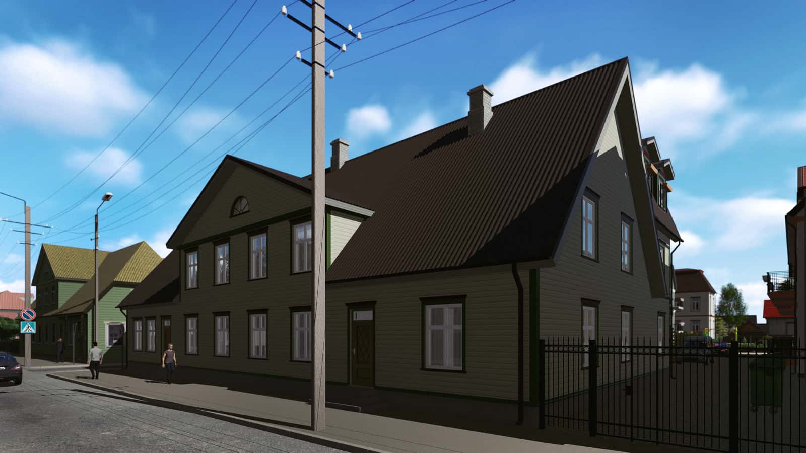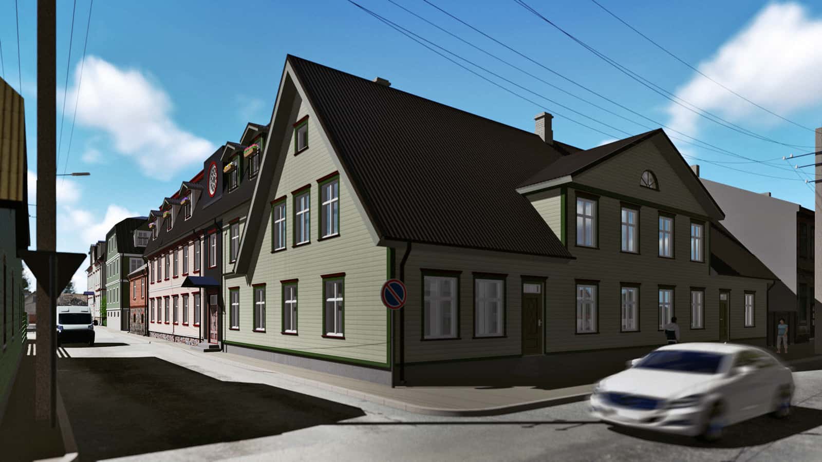 Our assignment was to create the 3D drawings and a video presentation on the basis of architect’s black-and-white sketches and one existing ready-made house. The drawings were not fully completed yet. Many ideas from the real estate developer and the architect were to be recreated with the software based on information from blitz meetings and phone calls. All this made the task bit more complicated. Finally, together we reached the initial goal and obtained a building permit from the city.Today, you can enjoy this pleasant and quiet quarter when walking from the Old market towards the Pärnu river bank. We appreciate the opportunity to give our part in making Pärnu more beautiful place to live.