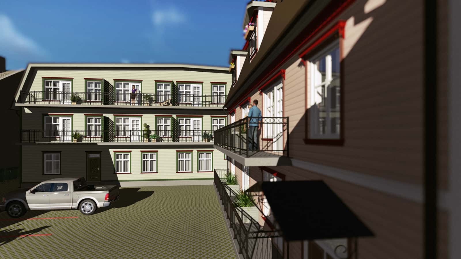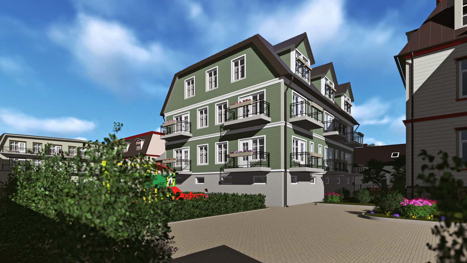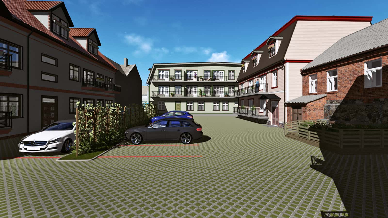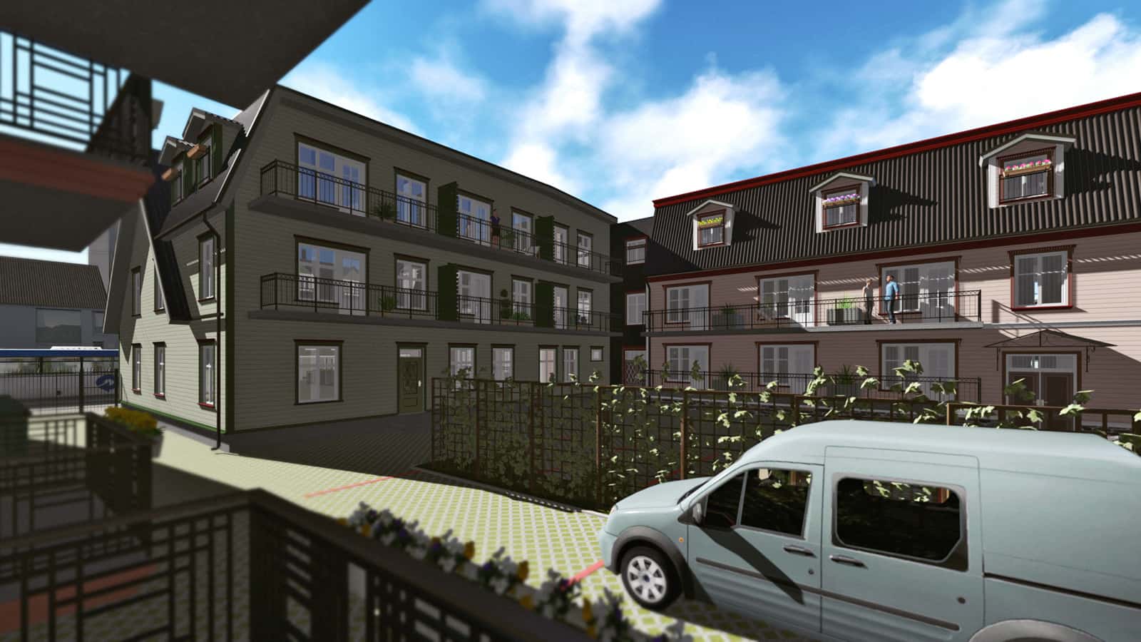 Our assignment was to create the 3D drawings and a video presentation on the basis of architect’s black-and-white sketches and one existing ready-made house. The drawings were not fully completed yet. Many ideas from the real estate developer and the architect were to be recreated with the software based on information from blitz meetings and phone calls. All this made the task bit more complicated. Finally, together we reached the initial goal and obtained a building permit from the city.Today, you can enjoy this pleasant and quiet quarter when walking from the Old market towards the Pärnu river bank. We appreciate the opportunity to give our part in making Pärnu more beautiful place to live.