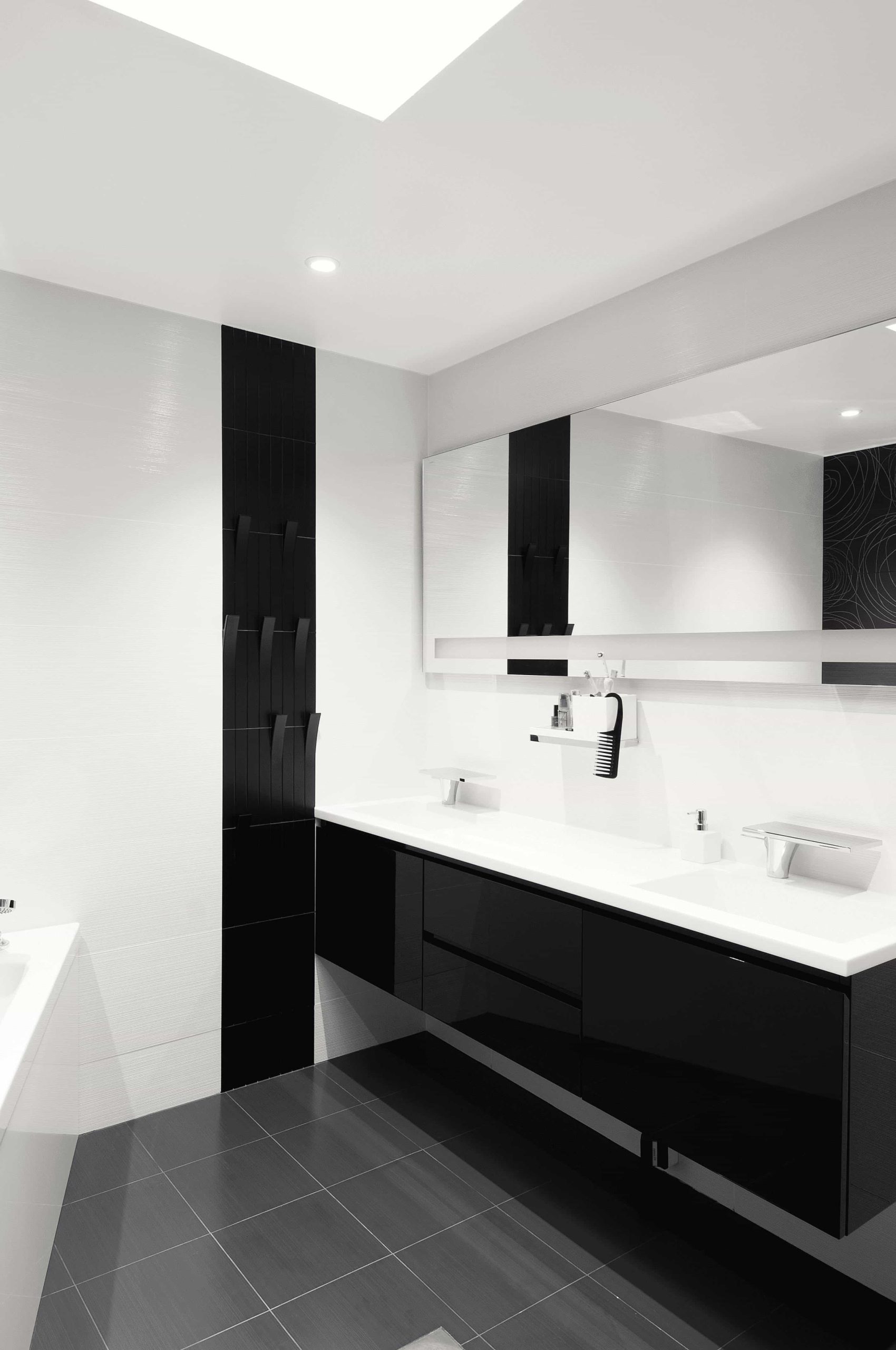 Mängulisust annavad vannituppa põnevad keraamilised nagi-liistud, moodustades keraamiliste seinaplaatidega ühtse terviku.