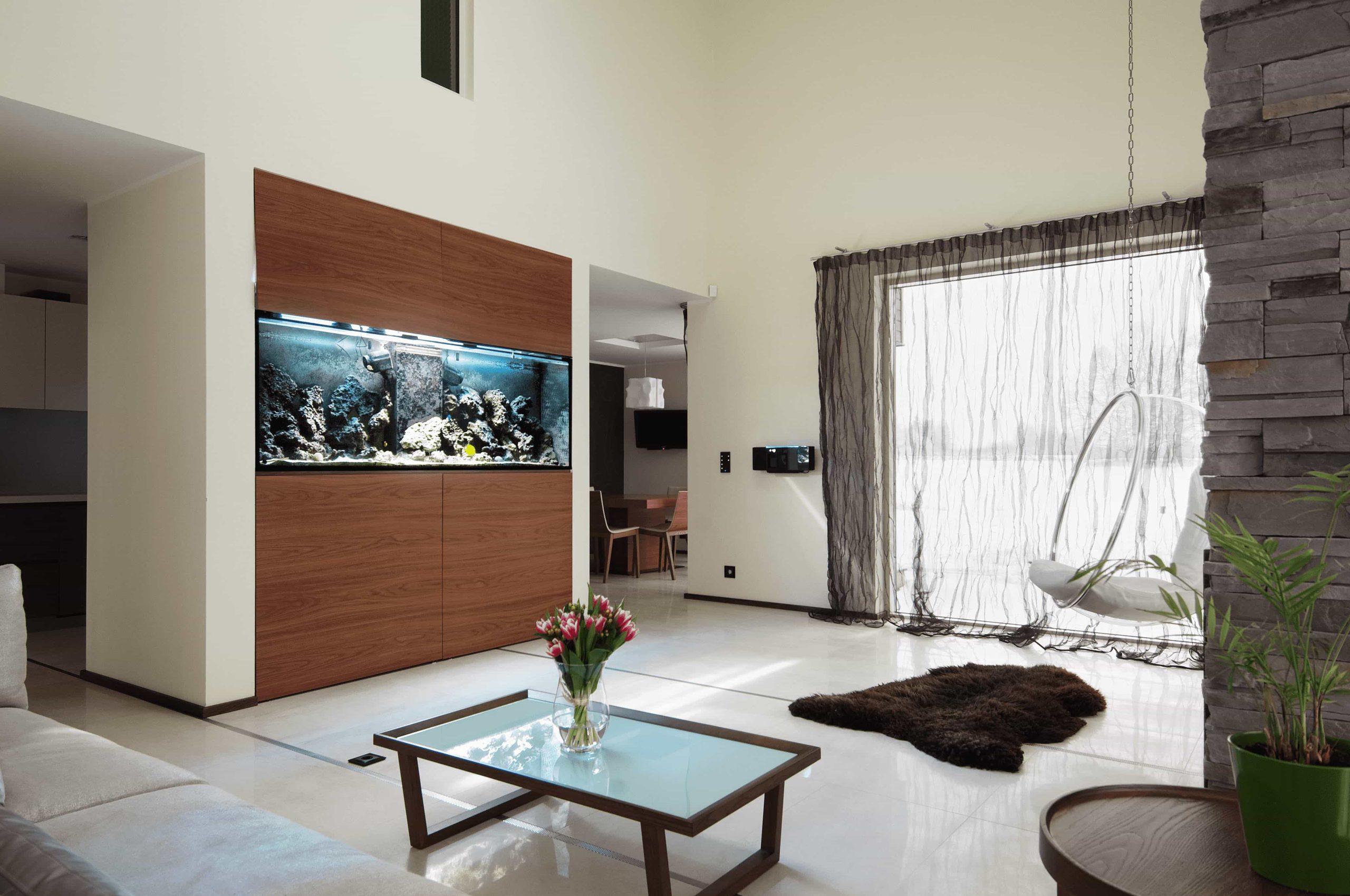 Elutuba eraldab köögiosast seinaosa, mille köögipoolel asub kodutehnika – ahi, külmkapp (artikli päises oleval fotol). Elutoapoolne osa seinast on suures osas mereakvaariumiga täidetud. See oli pere poolne erisoov.