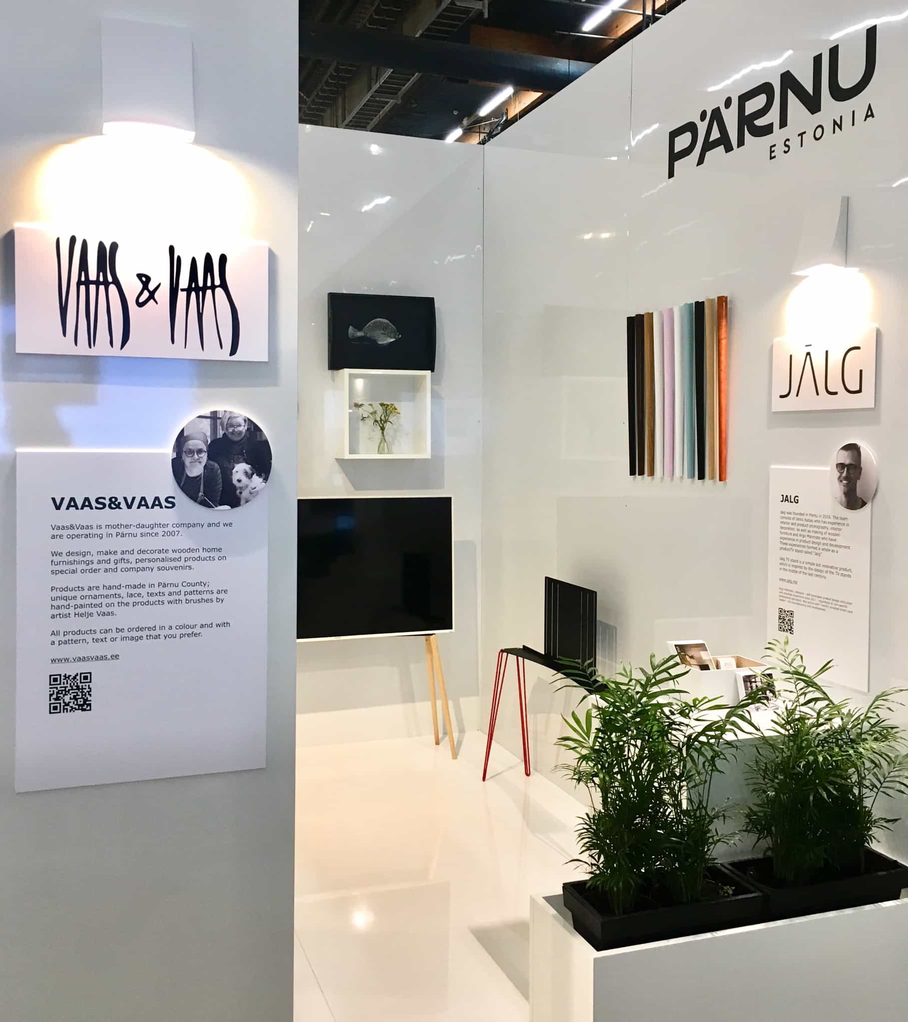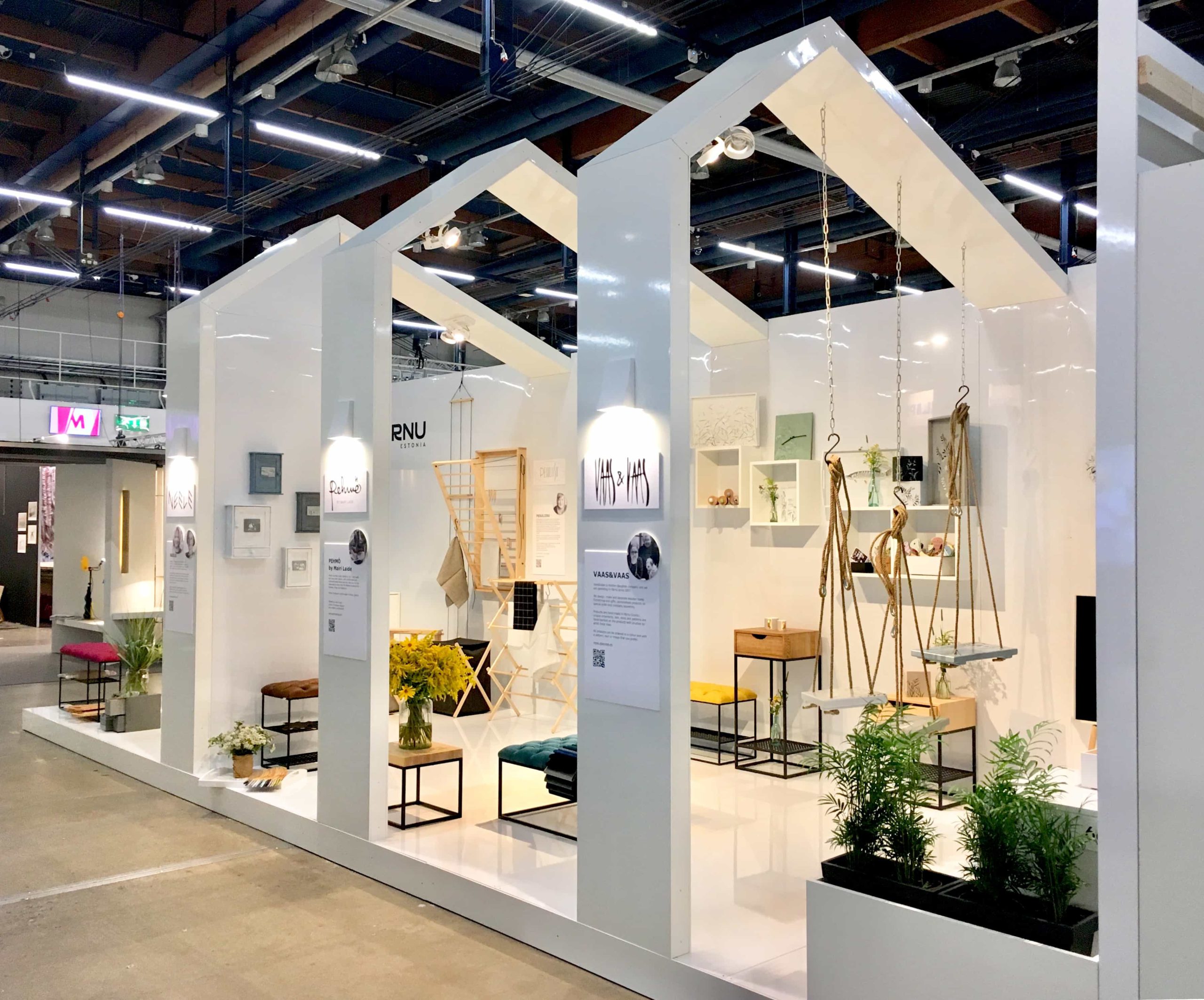 Iga ettevõtte toodete juurde planeerisime lisaks juuresviibivale disainerile kirjalikud tutvustused, taustalood ja pildid. Et kõiki eraldi veelgi rohkem esile tuua, valisime üldvalgustusele lisaks tutvustustele ja toodetele suunatud valgused. Sellise helge, heleda ja hästi valgustatud boksidisaini puhul said disainerite erksad ja värvilised tooted mööduvatele messikülalistele kenasti silma paista.