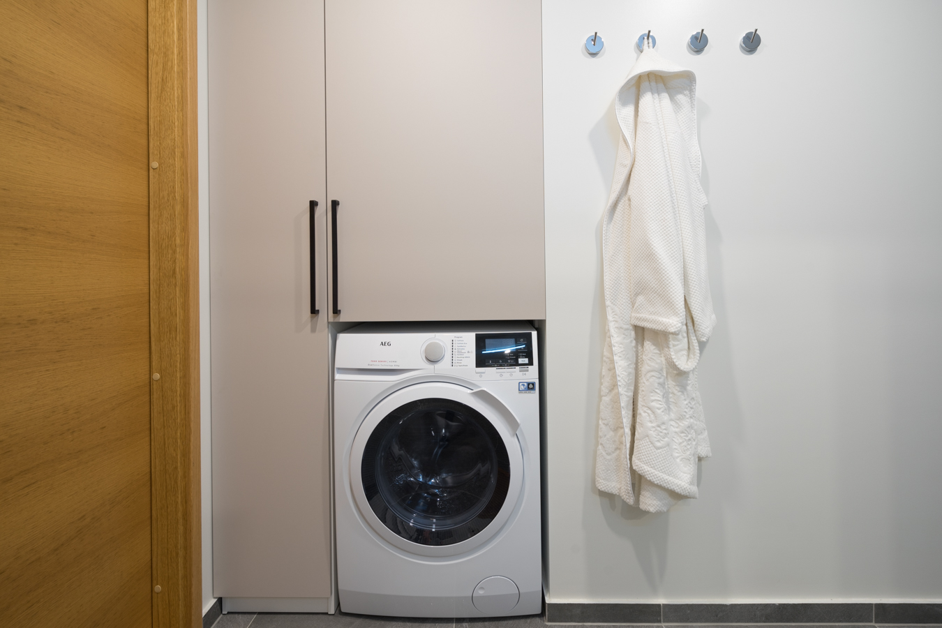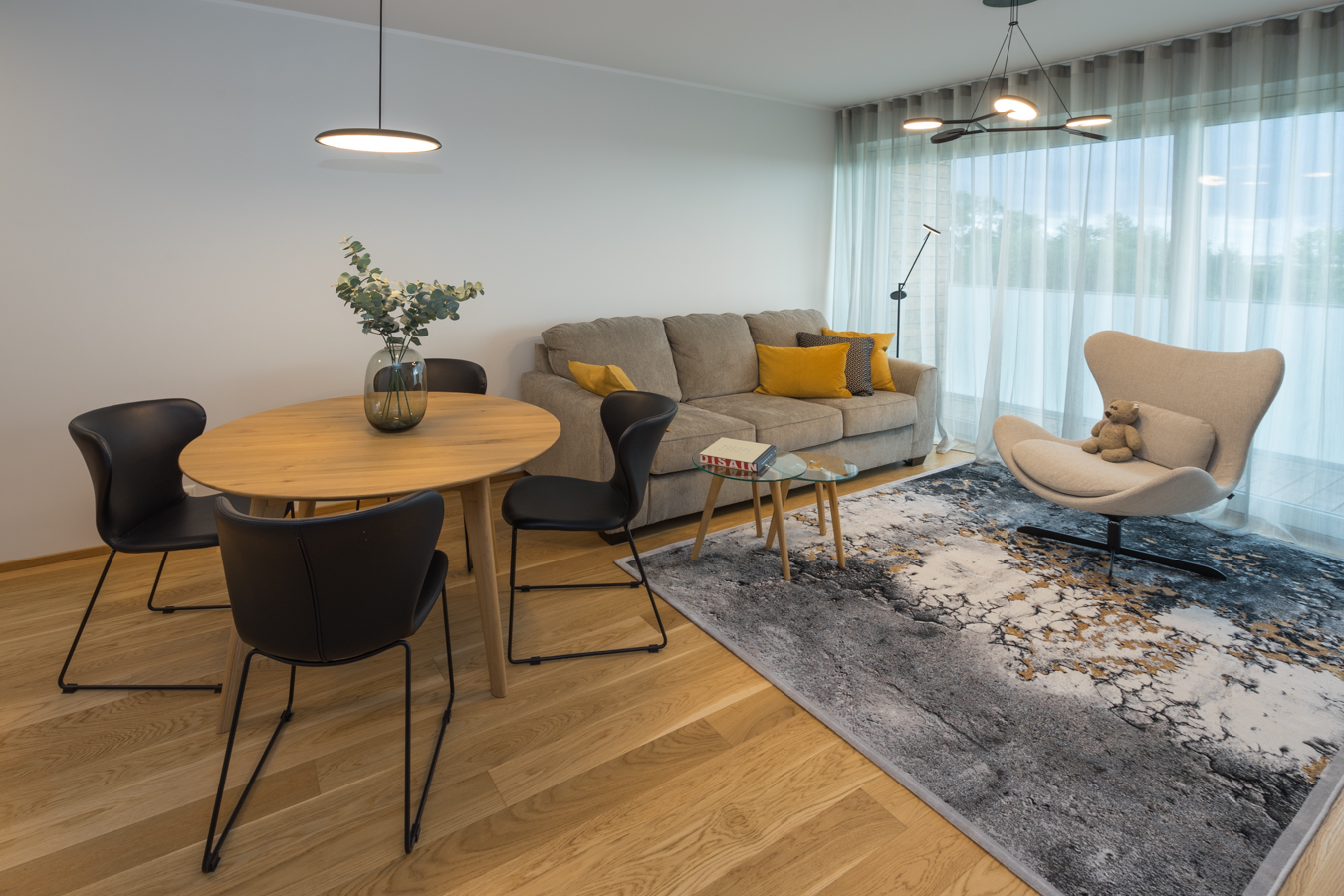 Köögimööbli ja tubade kapid/kummutid valisime Siloma kollektsioonist. Elutoa hubasemaks ning kodusemaks tegemiseks lisasime neutraalsetes toonides, ent vägagi kunstipärase vaiba Sitapi valikust.