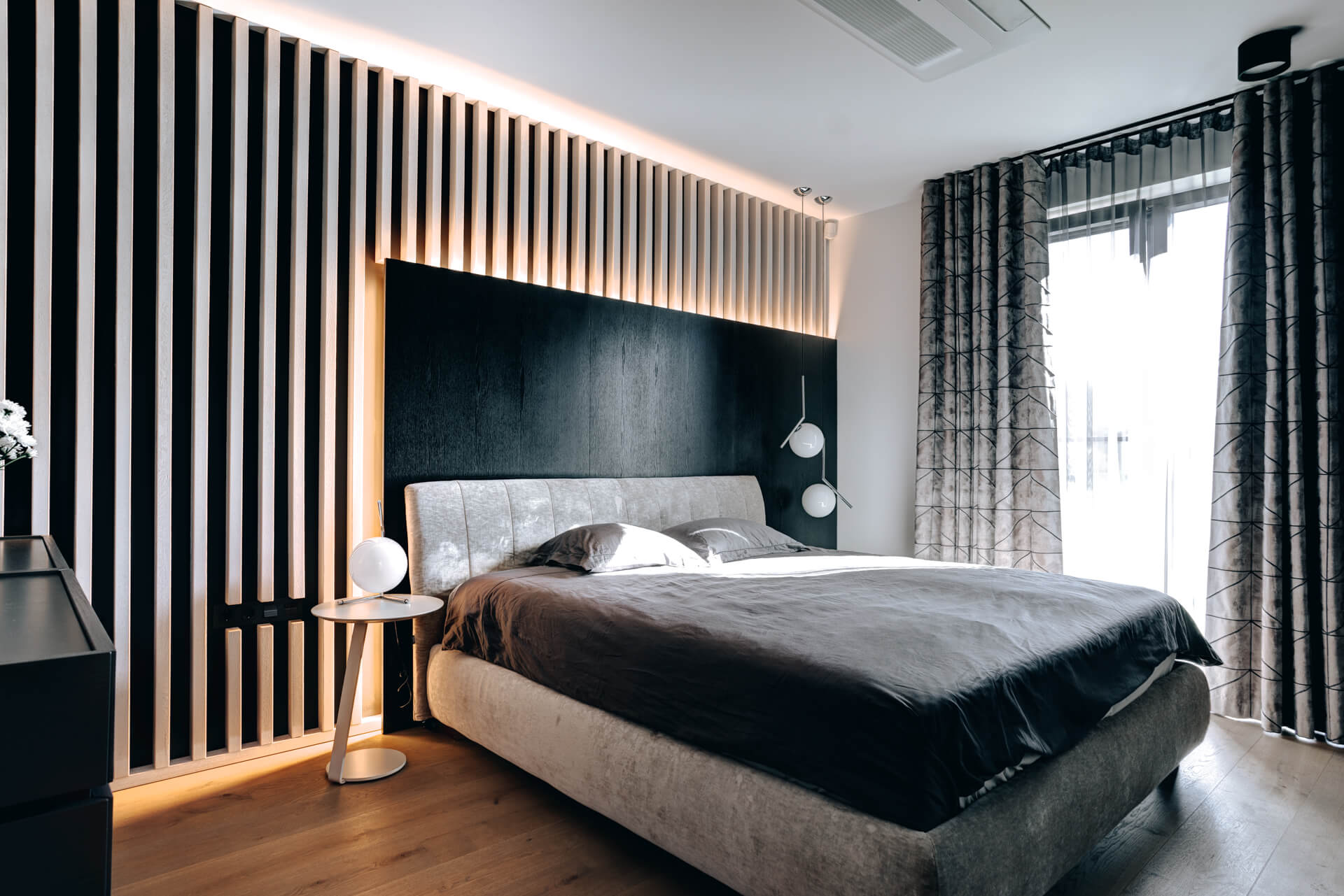 Peamagamistoas on sisse toodud asümmeetriat. Seintel on kasutatud dekoratiivvärvi ja ribipaneeli. Selle magamistoa juurde kuulub täiusliku planeeringuga privaatne luksuslik vannituba. Selle ruumi üheks luksuslikuks elemendiks on Dektonist eritellimusel valmistatud valamud, mida täiendavad eritellimusel valmistatud peeglikapid.