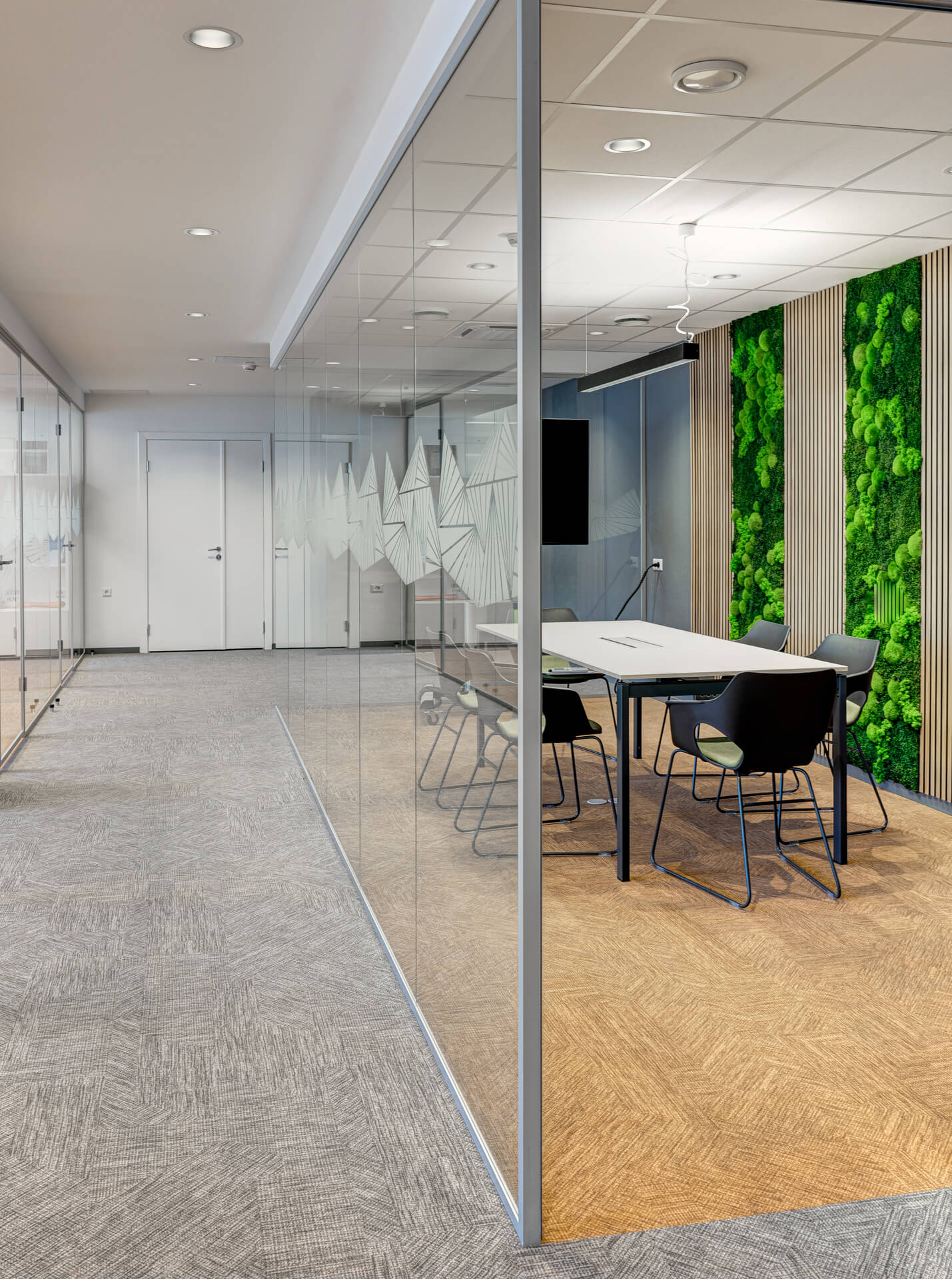 Suureks muutuseks said põrandatele valitud vaipkatte, mis lahendas nii eelneva akustikaprobleemi kui sai ka inspiratsiooniks kogu uuele kontori värvilahendusele. Eristasime vaiba värvidega erinevad tsoonid – töötsoonid, nõupidamiste ala ning puhkeala. Mõned eraldiseisvad ruumid nagu suur nõupidamiste ruum ja puhkeruum said omale värvilisemad vaibad.